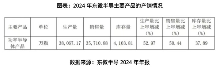 值得一提的是,2024年,东微半导的产品呈产销两旺的态势,功率半导体产品的产量同比大增52.97%至3.81亿颗,销量亦同比劲增50.44%至3.57亿颗。